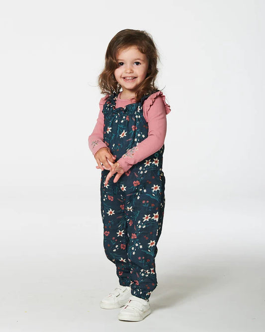 Printed Organic Cotton Onesie And Pointelle Overall Set Woodrose