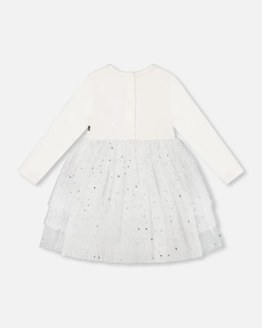 Baby Bi-Material Dress With Glittering Tulle Skirt Red Plaid