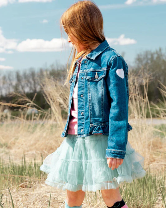 Kids Stretch Denim Jacket With Unicorn Embroidery