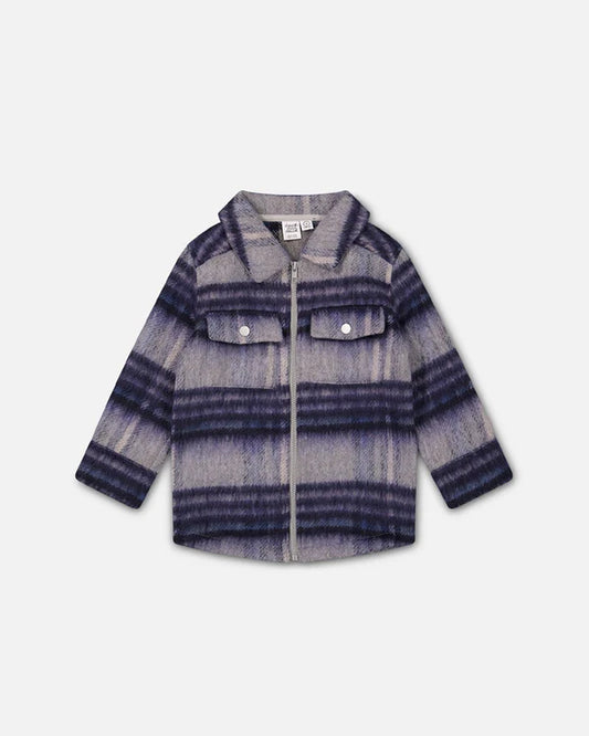 Overshirt Wool-Effect With Pockets Plaid Blue And Gray
