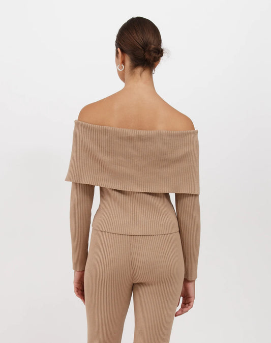Elle Rib Knit Off The Shoulder Knit Sweater