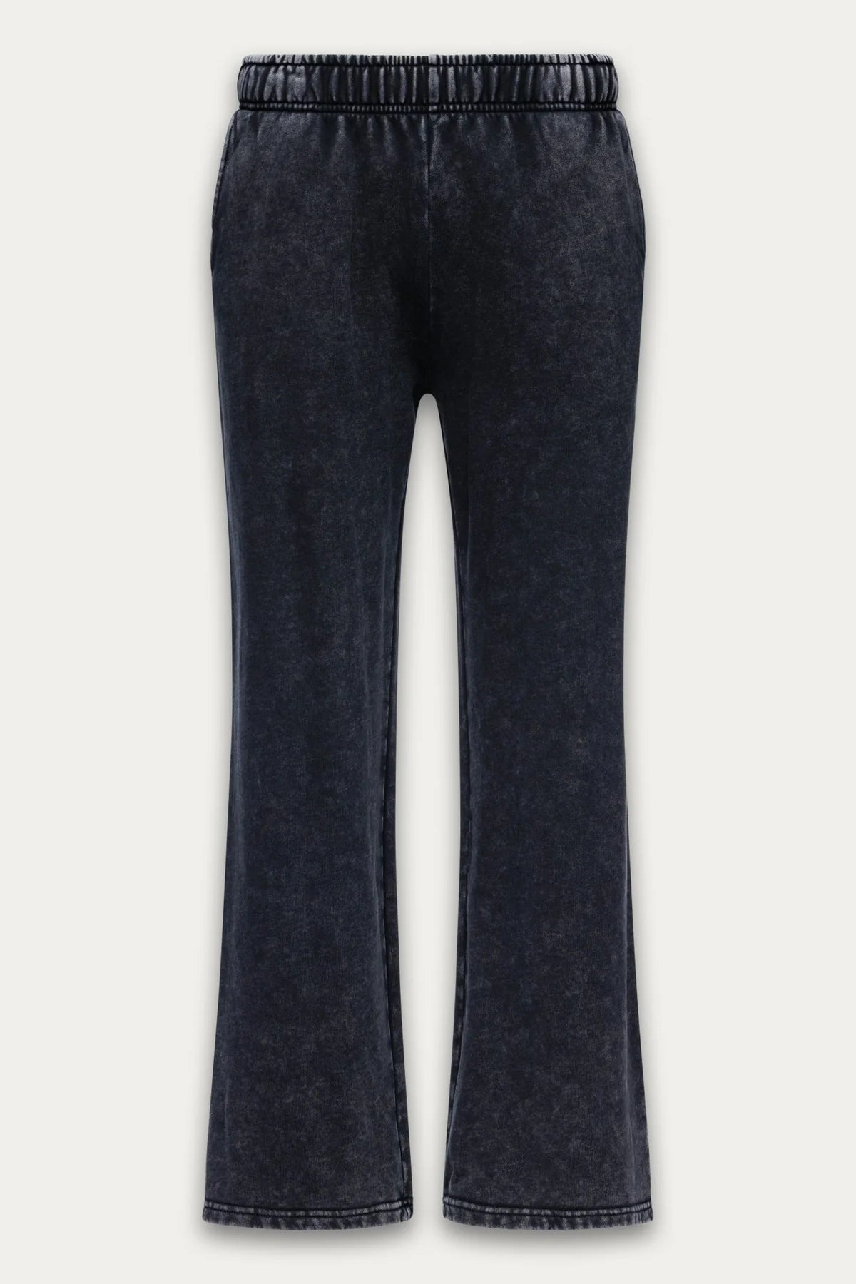 Heather grey lounge wide-leg pants made from soft brushed fleece for ultimate comfort.