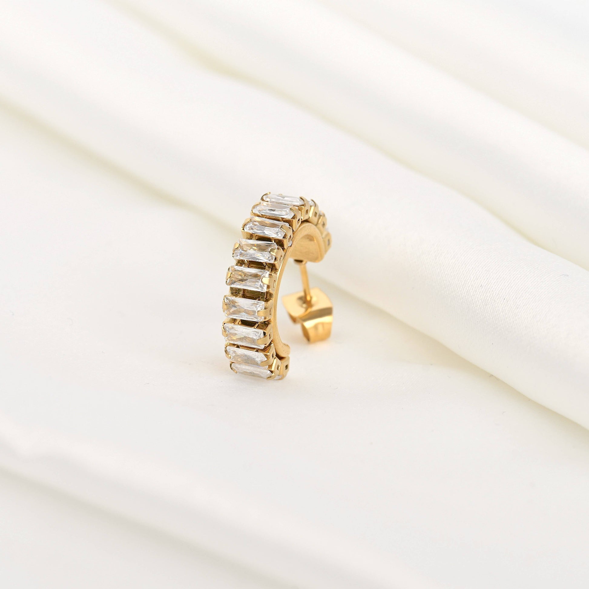 Gold CZ Hoops - Waterproof Small Diamond Hoop Earrings