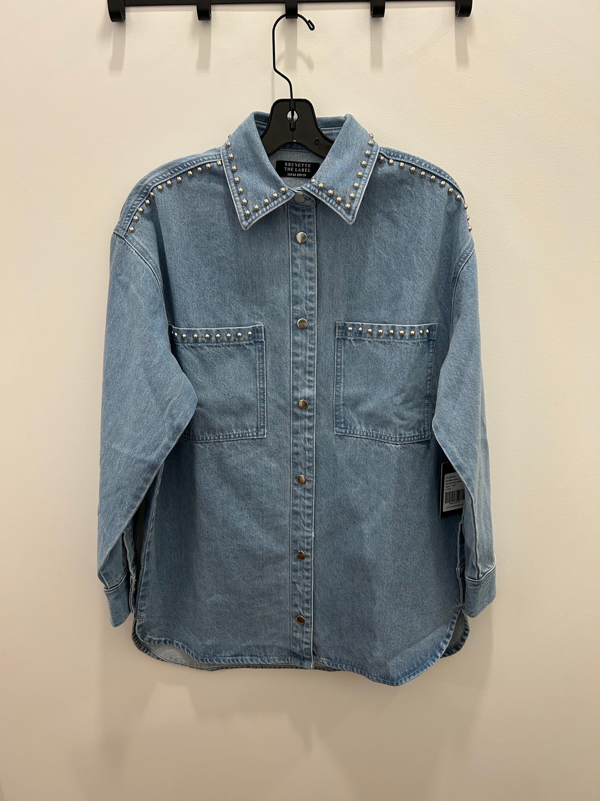Our Shania Denim Jacket is 100% cotton with vintage-inspired brushed silver hardware, dropped shoulder and two front chest pockets. She is truly an oversized fit with a wide and long body.